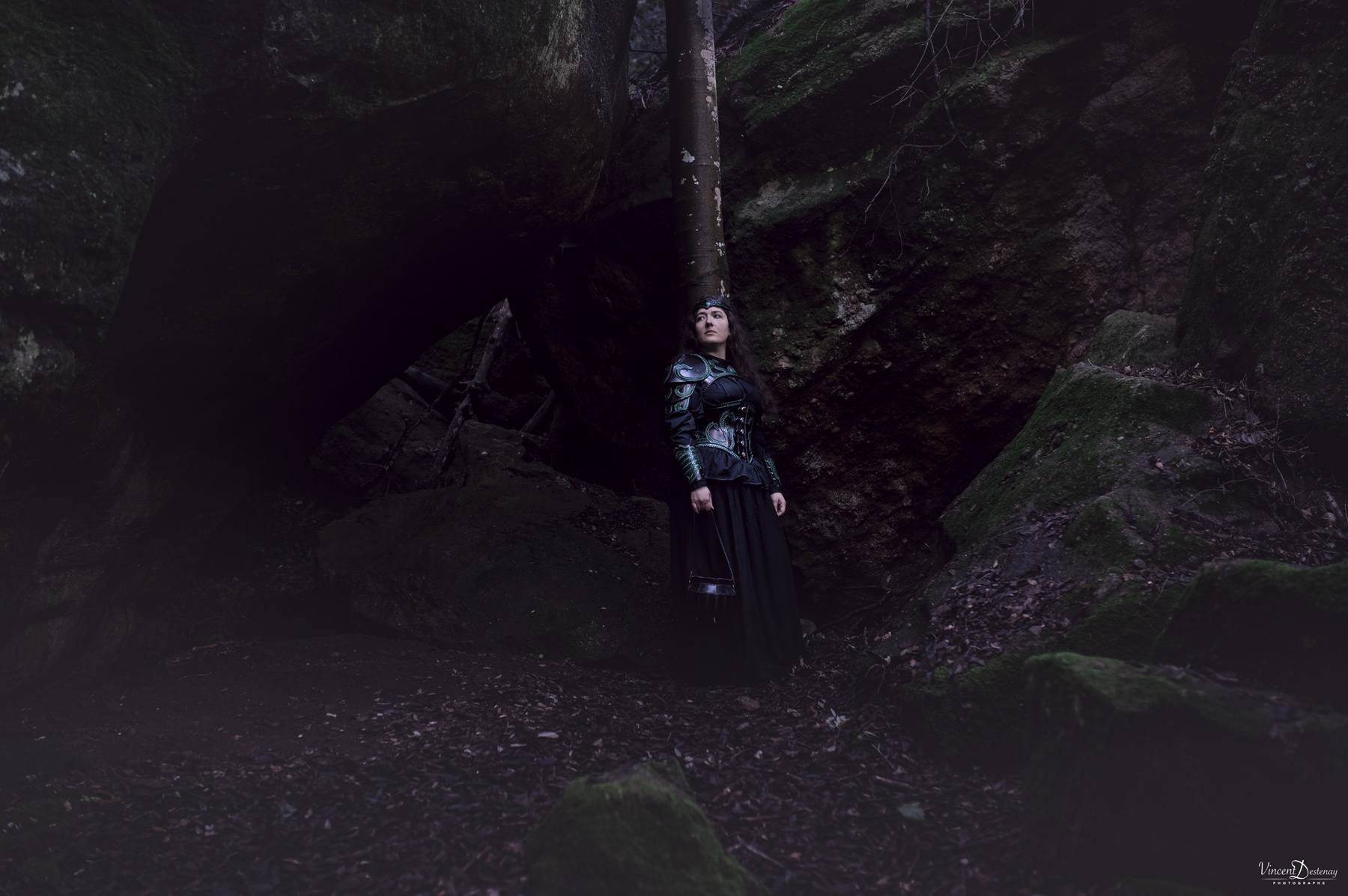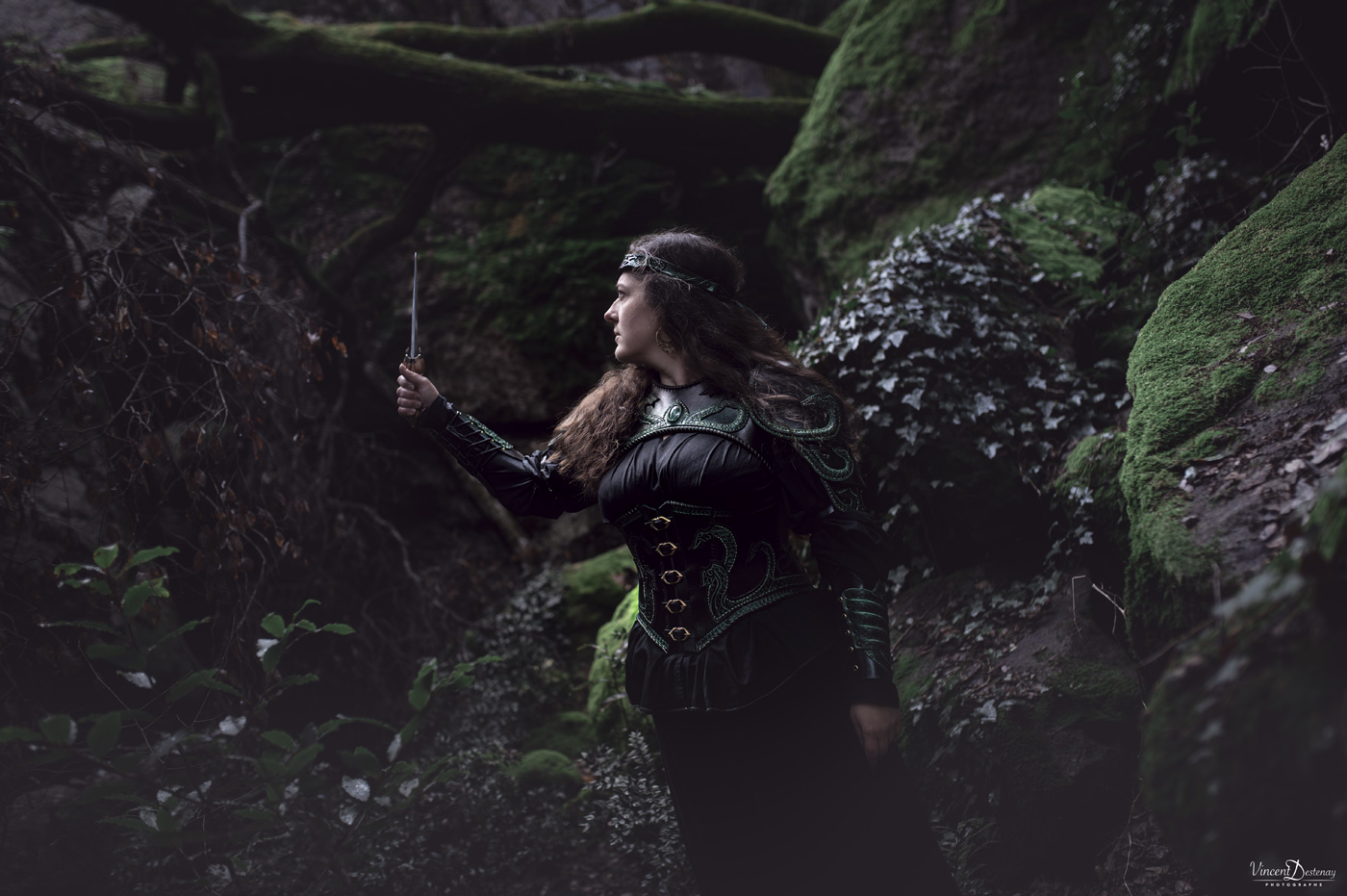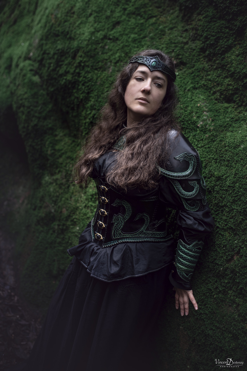 Tel quel avec ses coloris vert et noir, il portera à la perfection un look de sorcière des bois ou de magicienne antique, mais peut tout aussi bien habiller une volva viking avec de petits ajustements de coloris…