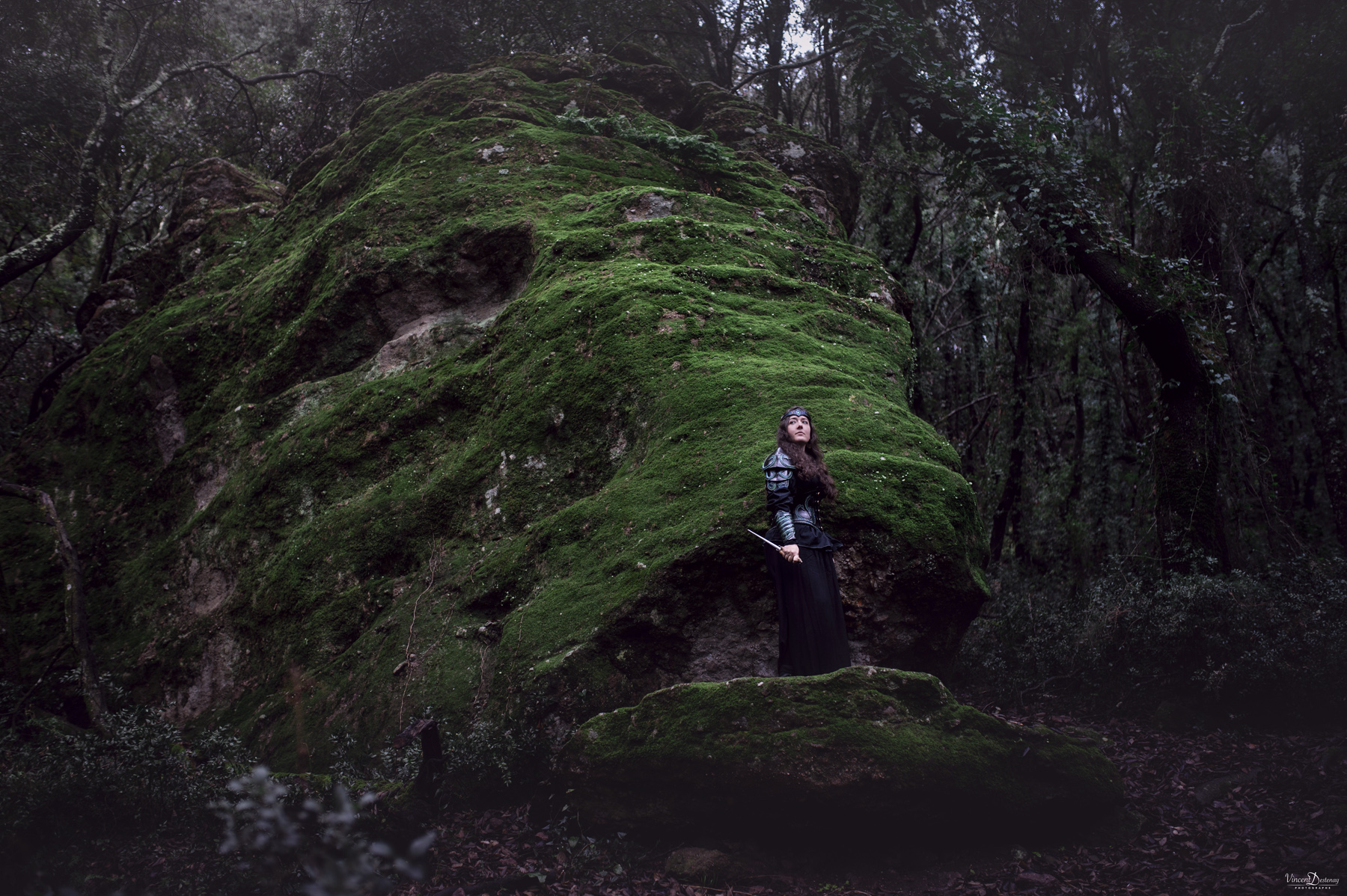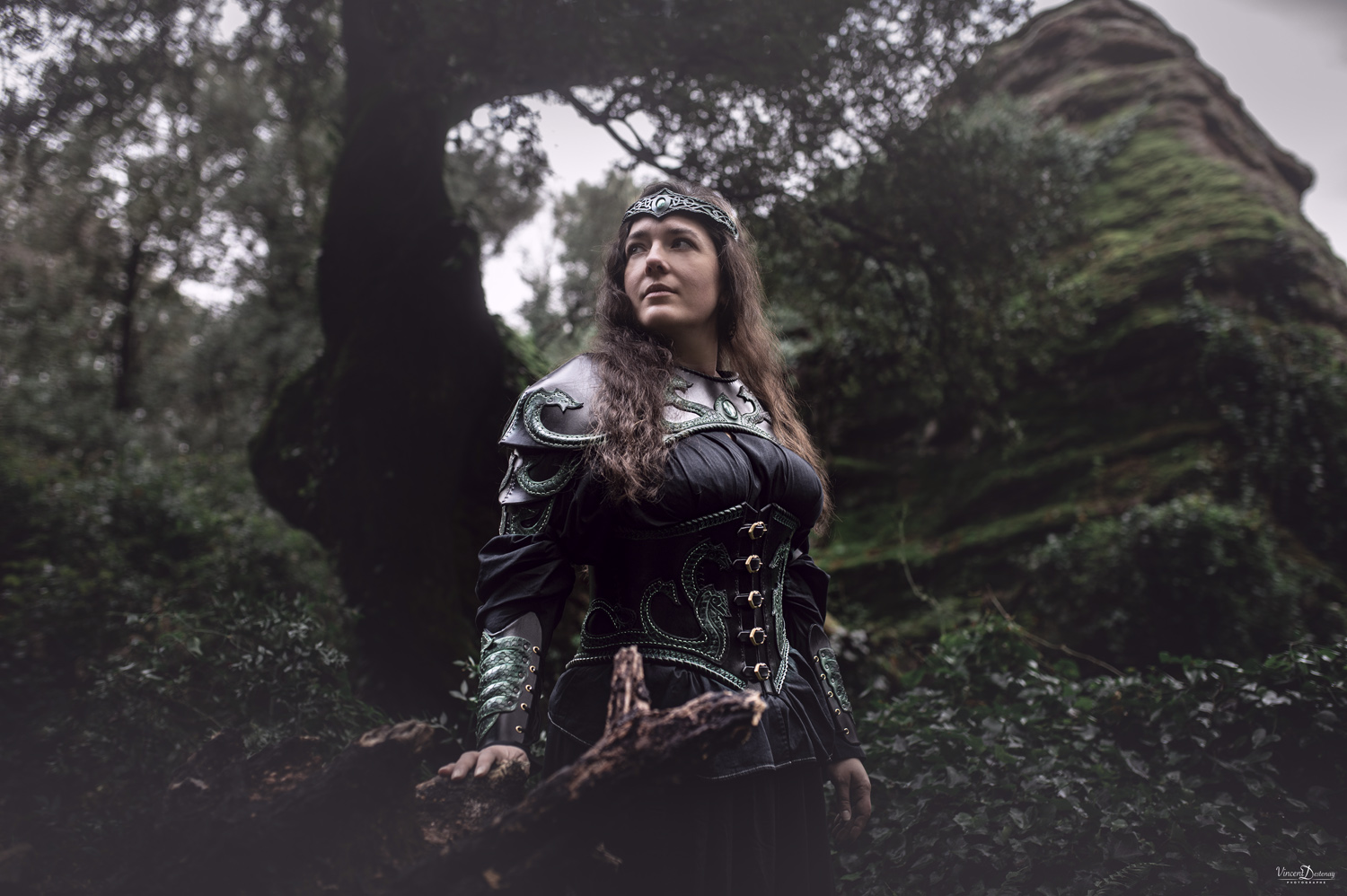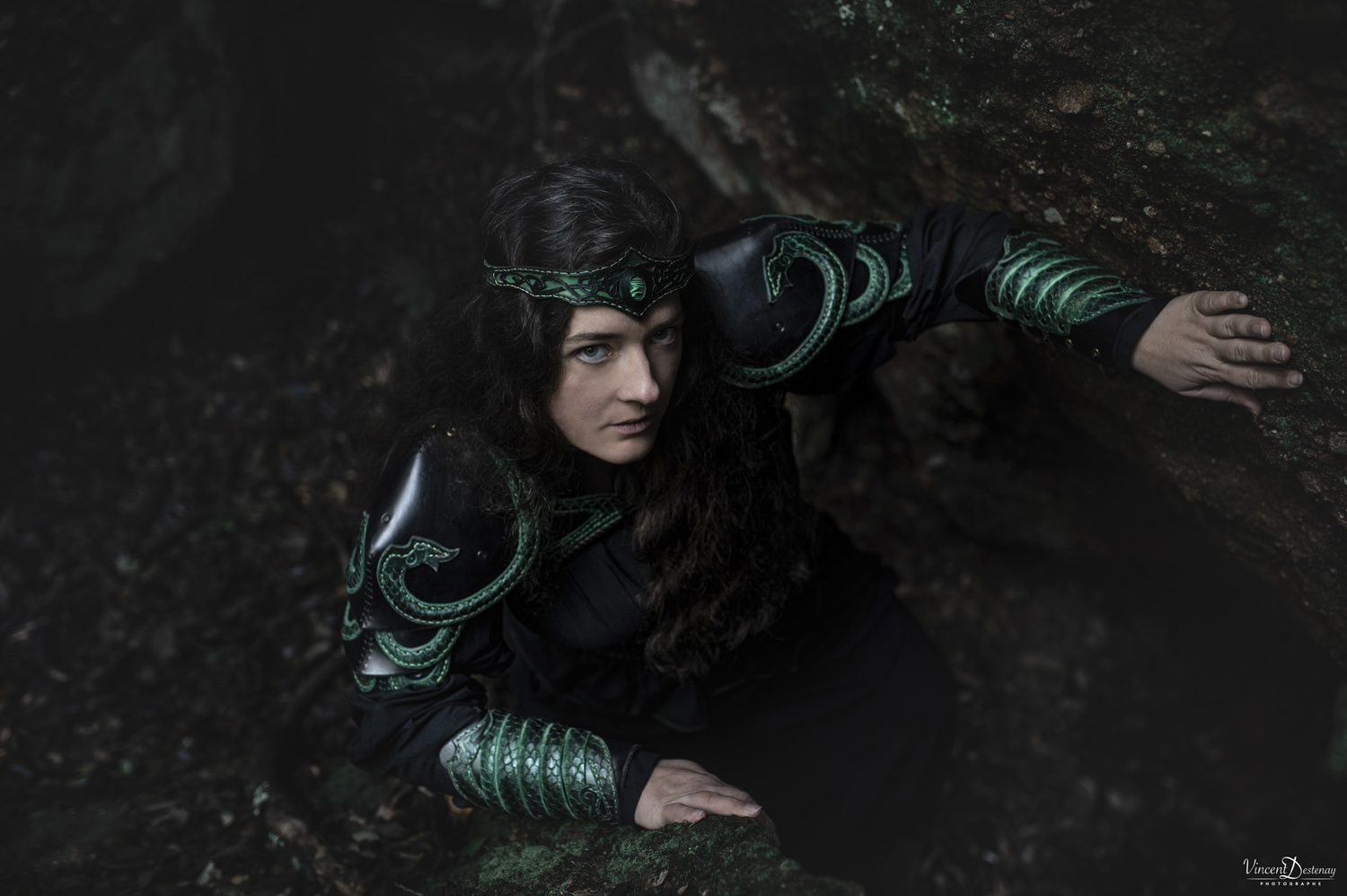 Tel quel avec ses coloris vert et noir, il portera à la perfection un look de sorcière des bois ou de magicienne antique, mais peut tout aussi bien habiller une volva viking avec de petits ajustements de coloris…